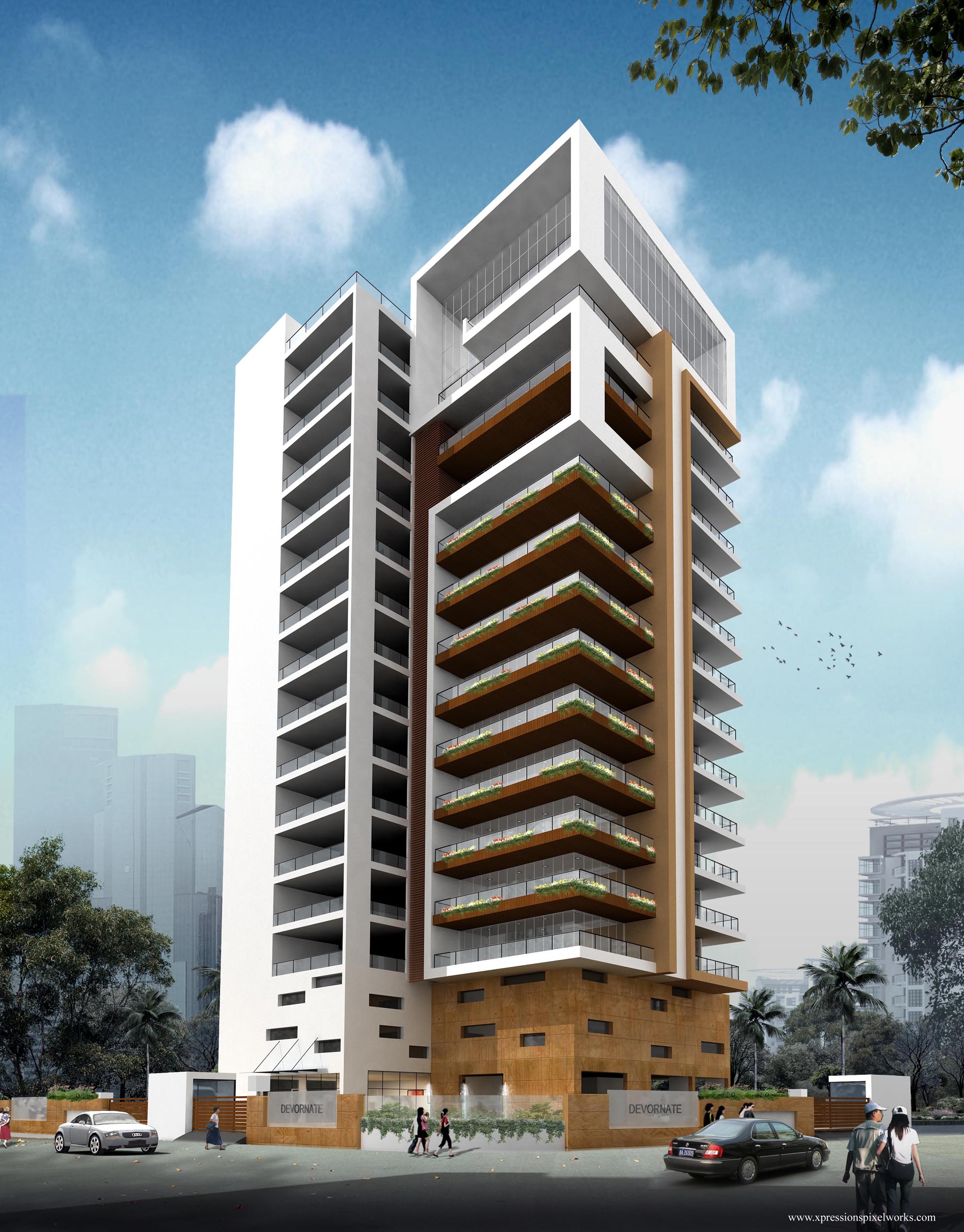Dev Ornate Year: 2009 - 2015 Location: Khar West, Mumbai, India Type: Luxury Residential Apartment Building Built Up Area: 45,000 sq.ft. Levels: Stilt + 2 Upper Floors Parking + 13 upper Floors Status: Completed